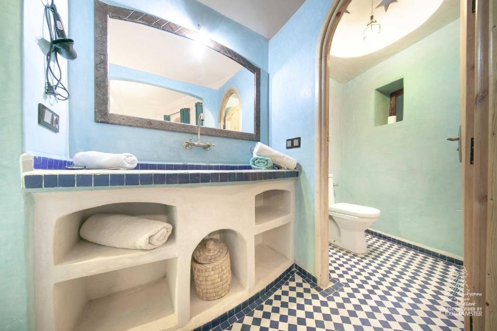 Spacieuse et lumineuse, elle est décorée dans un style saharien raffiné, avec des matériaux locaux et des tons naturels apaisants.
